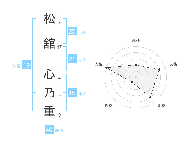 松舘 心乃重さんを姓名の画数から五運を鑑定