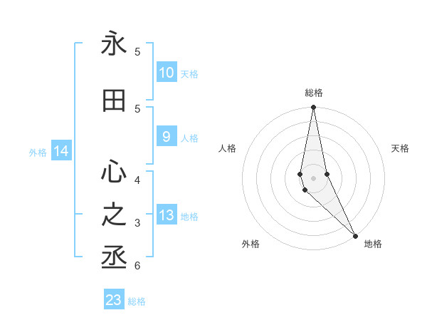 永田 心之丞さんの総格は23画の5点!