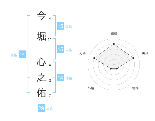 今堀 心之佑さんの総格は29画の4点!