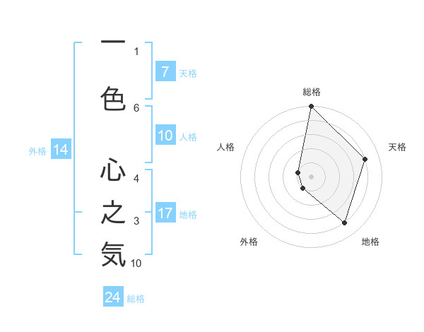 一色 心之気さんの総格は24画の5点!
