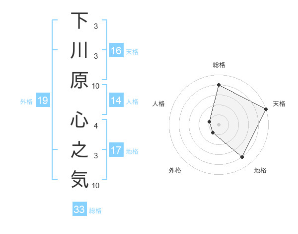 下川原 心之気さんを姓名の画数から五運を鑑定