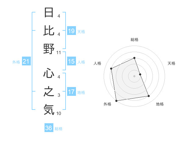 日比野 心之気さんの外格は21画の5点!