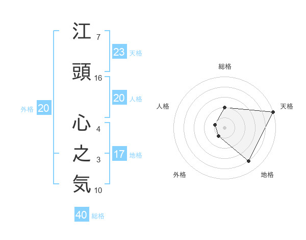 江頭 心之気さんを姓名の画数から五運を鑑定