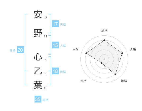安野 心乙葉さんを姓名の画数から五運を鑑定