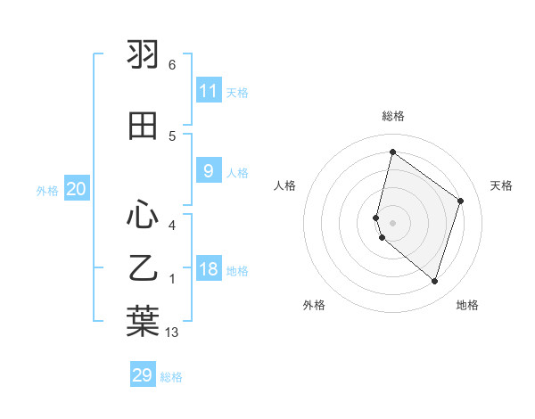 羽田 心乙葉さんの総格は29画の4点!
