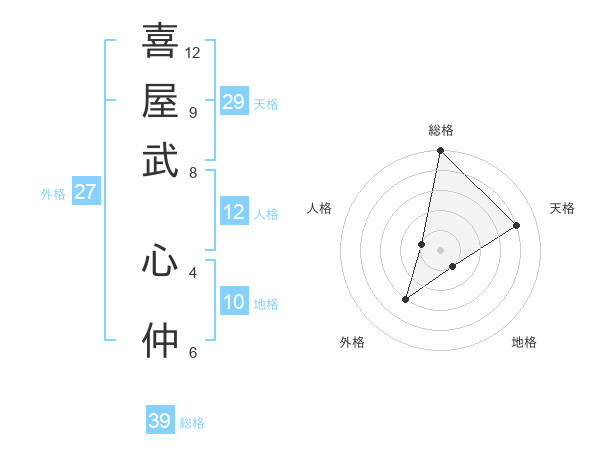 喜屋武 心仲さんを姓名の画数から五運を鑑定