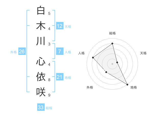 白木川 心依咲さんを姓名の画数から五運を鑑定