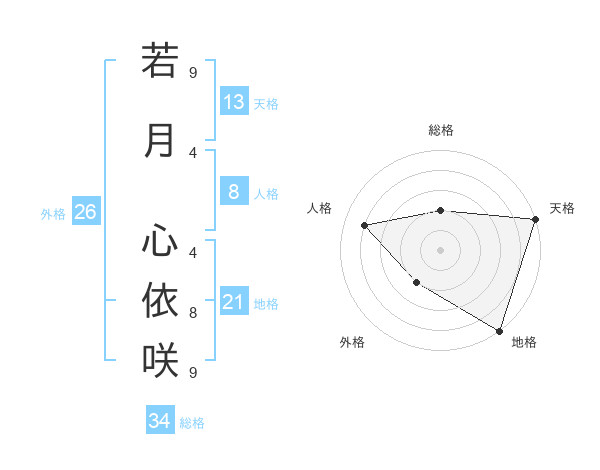 若月 心依咲さんを姓名の画数から五運を鑑定