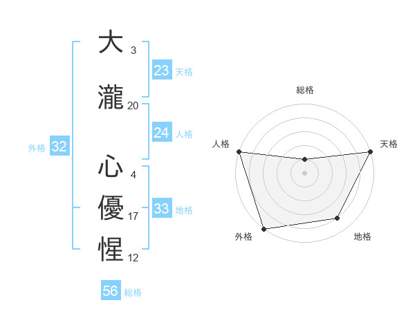 大瀧 心優惺さんの総格は56画の1点!