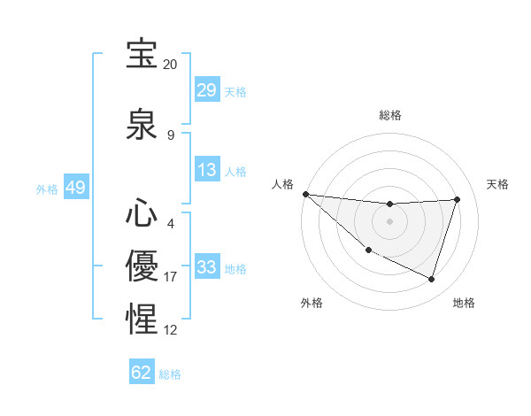 宝泉 心優惺さんを姓名の画数から五運を鑑定