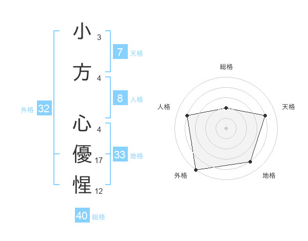 小方 心優惺さんの外格は32画の5点!
