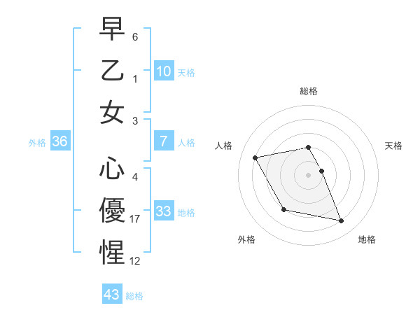 早乙女 心優惺さんを姓名の画数から五運を鑑定
