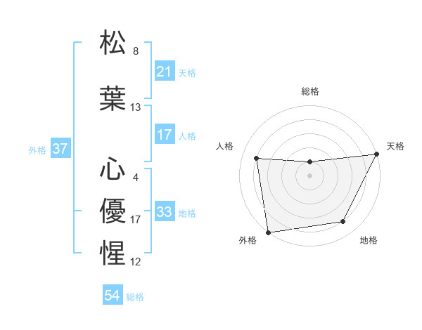 松葉 心優惺さんの外格は37画の5点!