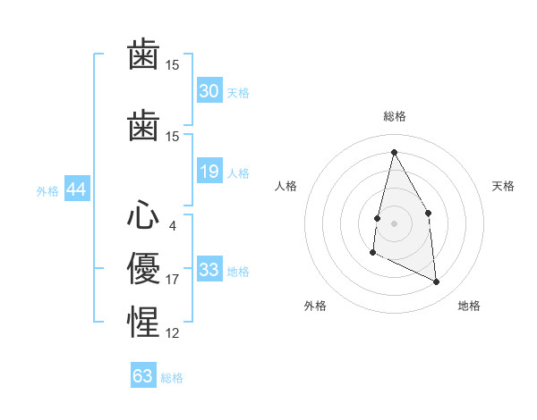 歯歯 心優惺さんを姓名の画数から五運を鑑定