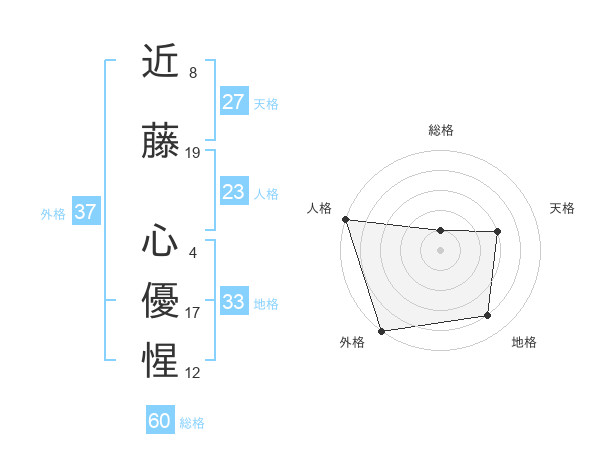 近藤 心優惺さんの総格は60画の1点