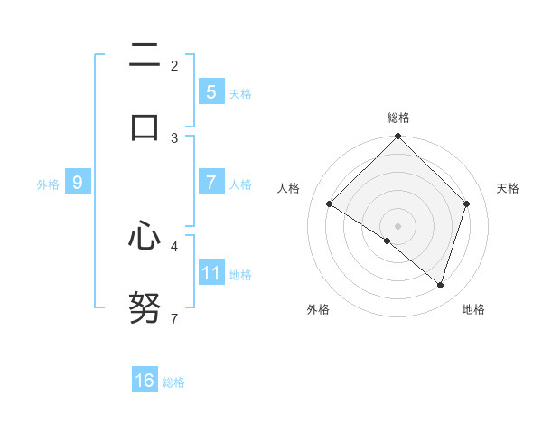 二口 心努さんを姓名の画数から五運を鑑定
