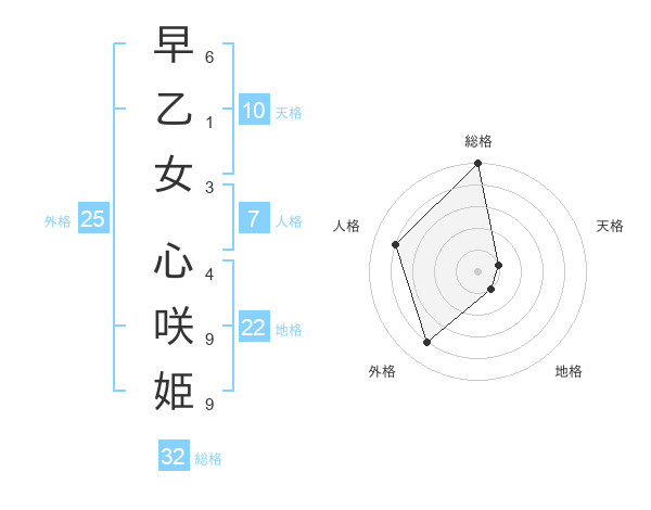 早乙女 心咲姫さんの総格は32画の5点