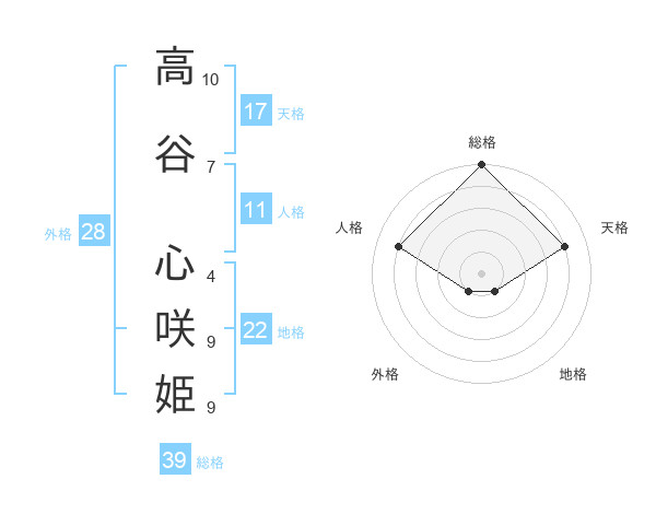 高谷 心咲姫さんの総格は39画の5点!