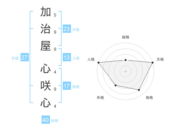 加治屋 心咲心さんの天格は23画の5点