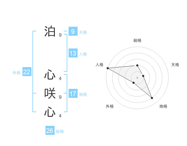 泊 心咲心さんを姓名の画数から五運を鑑定