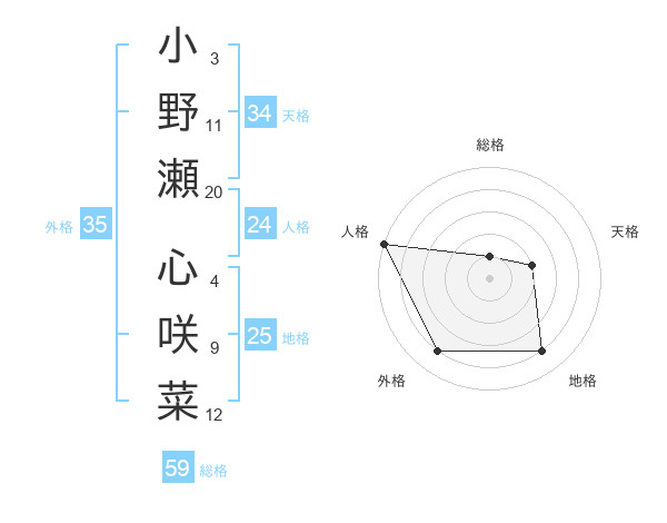 小野瀬 心咲菜さんを姓名の画数から五運を鑑定