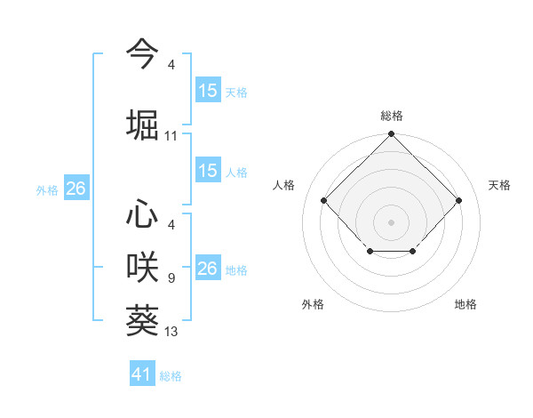 今堀 心咲葵さんを姓名の画数から五運を鑑定