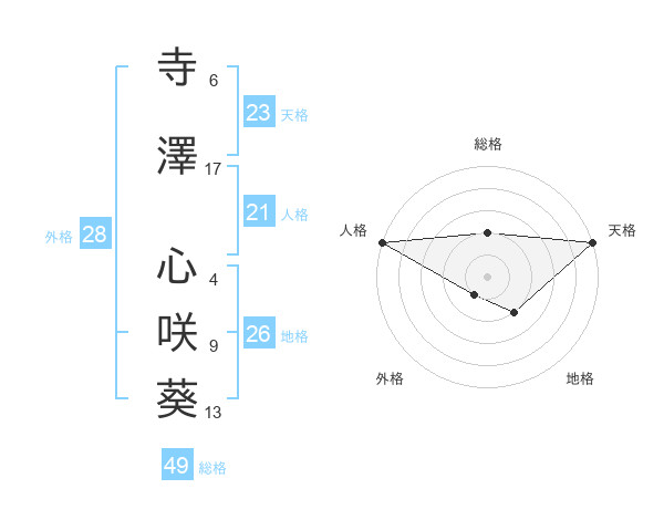 寺澤 心咲葵さんの総格は49画の2点