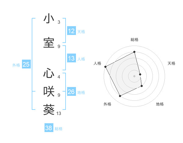 小室 心咲葵さんの総格は38画の4点!