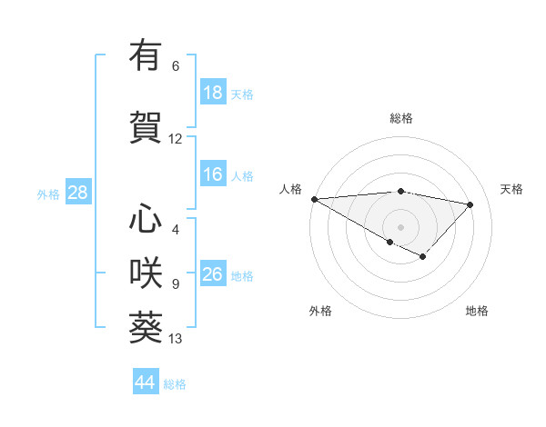 有賀 心咲葵さんを姓名の画数から五運を鑑定