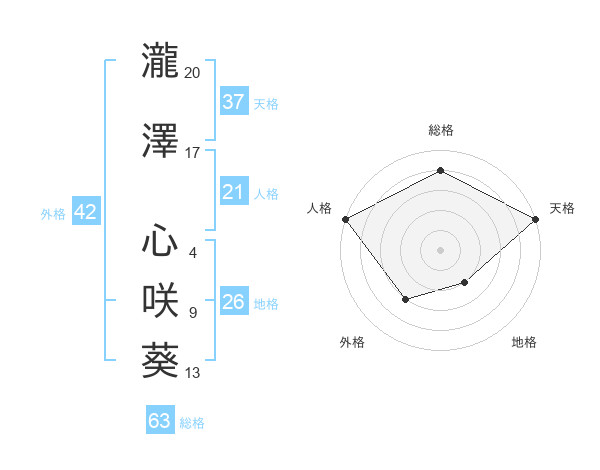 瀧澤 心咲葵さんを姓名の画数から五運を鑑定
