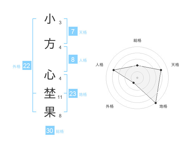 小方 心埜果さんを姓名の画数から五運を鑑定