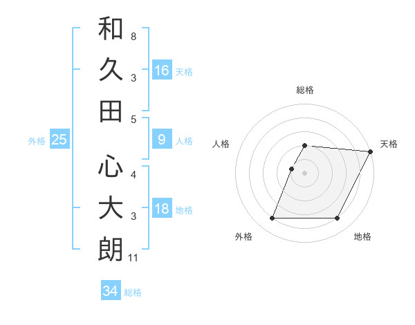 和久田 心大朗さんを姓名の画数から五運を鑑定
