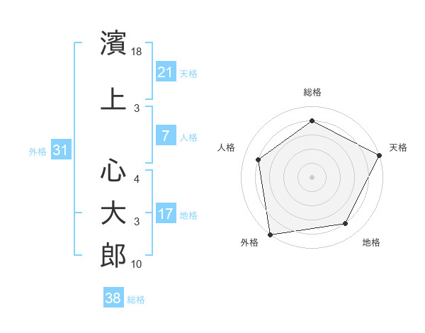 濱上 心大郎さんの総格は38画の4点!