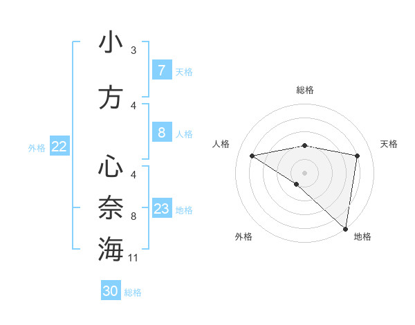 小方 心奈海さんを姓名の画数から五運を鑑定