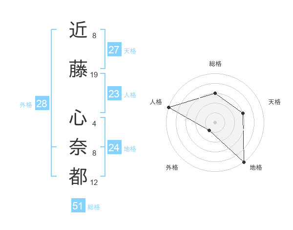 近藤 心奈都さんを姓名の画数から五運を鑑定