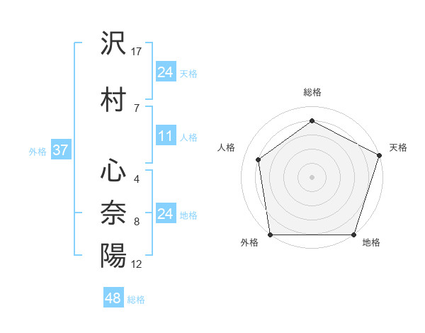 沢村 心奈陽さんを姓名の画数から五運を鑑定