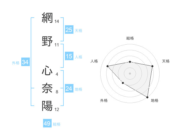 網野 心奈陽さんの天格は25画の4点!