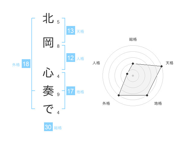 北岡 心奏でさんを姓名の画数から五運を鑑定