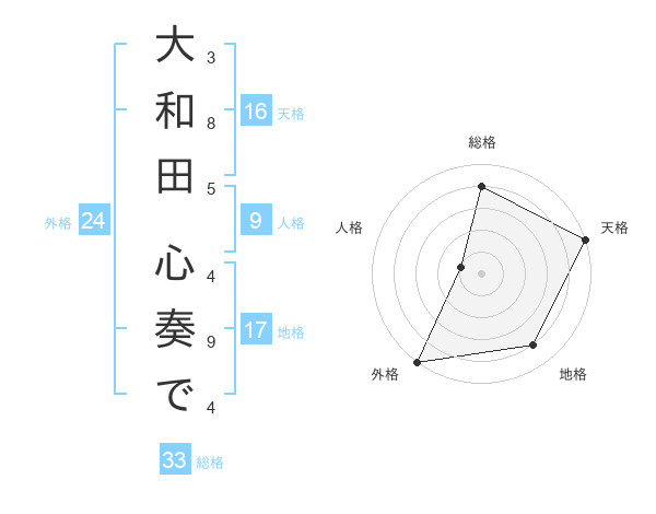 大和田 心奏でさんを姓名の画数から五運を鑑定