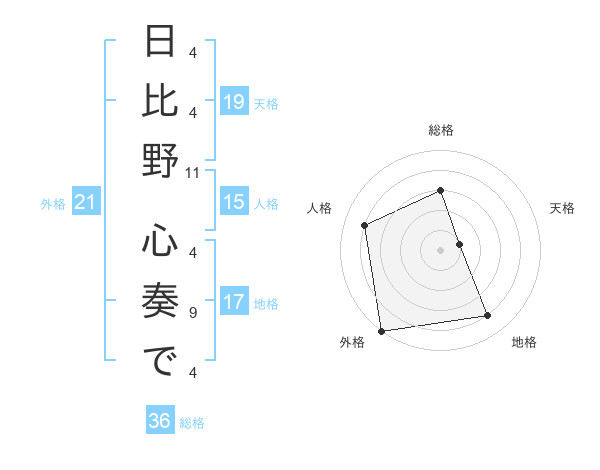 日比野 心奏でさんの外格は21画の5点!