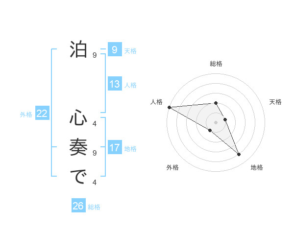 泊 心奏でさんを姓名の画数から五運を鑑定