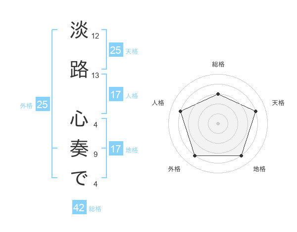 淡路 心奏でさんの総格は42画の3点!