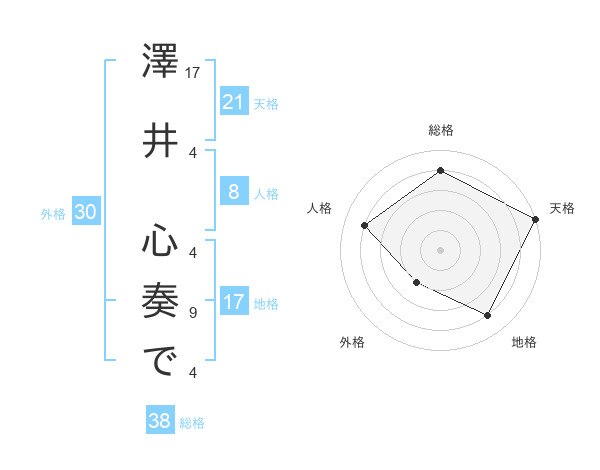 澤井 心奏でさんを姓名の画数から五運を鑑定