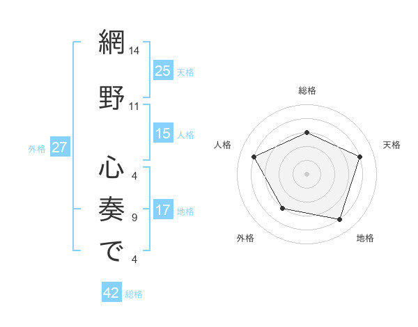 網野 心奏でさんの天格は25画の4点!