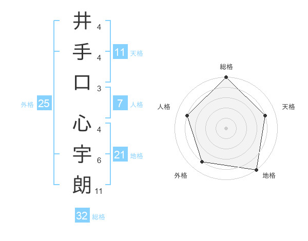 井手口 心宇朗さんを姓名の画数から五運を鑑定