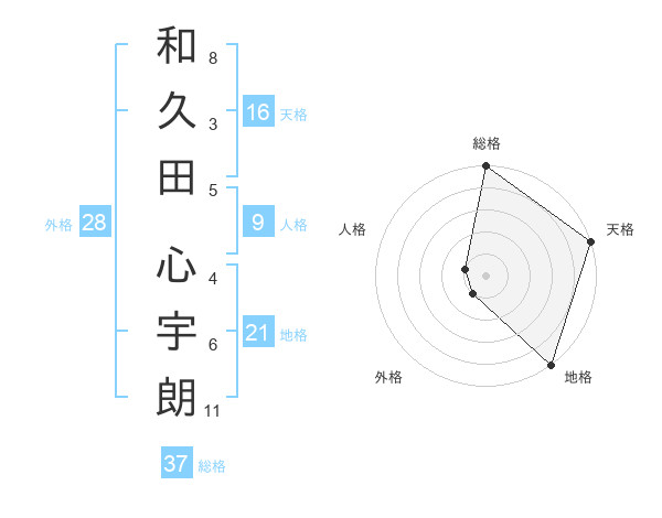和久田 心宇朗さんの天格は16画の5点!