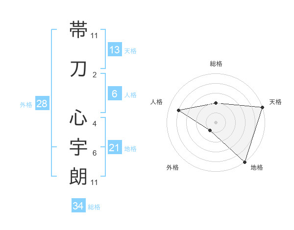 帯刀 心宇朗さんを姓名の画数から五運を鑑定