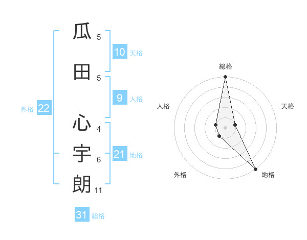 瓜田 心宇朗さんの総格は31画の5点!
