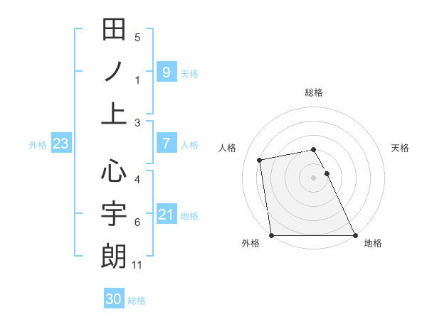 田ノ上 心宇朗さんを姓名の画数から五運を鑑定
