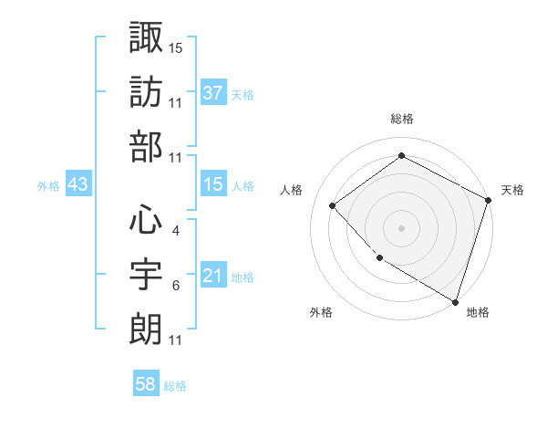 諏訪部 心宇朗さんを姓名の画数から五運を鑑定